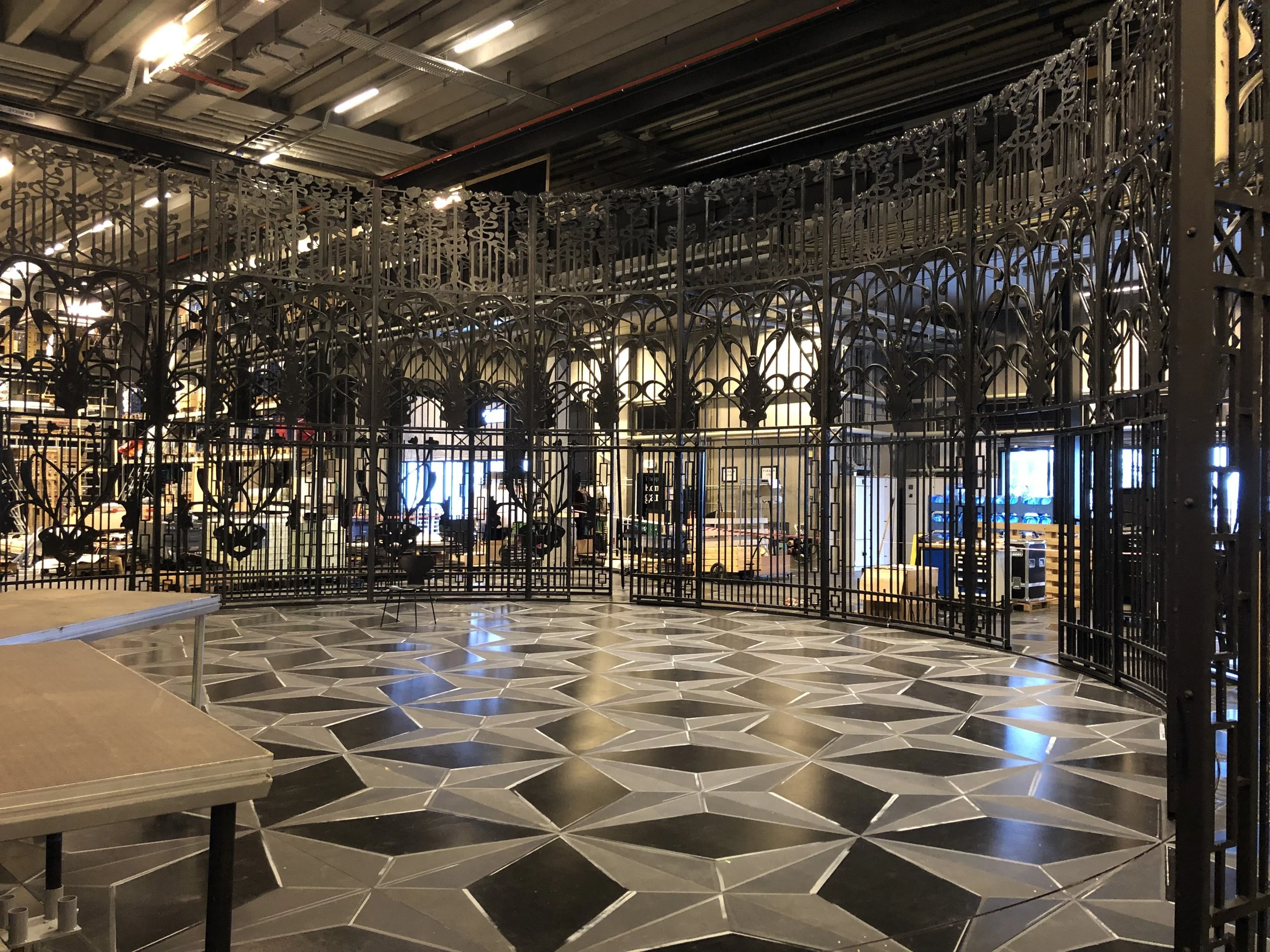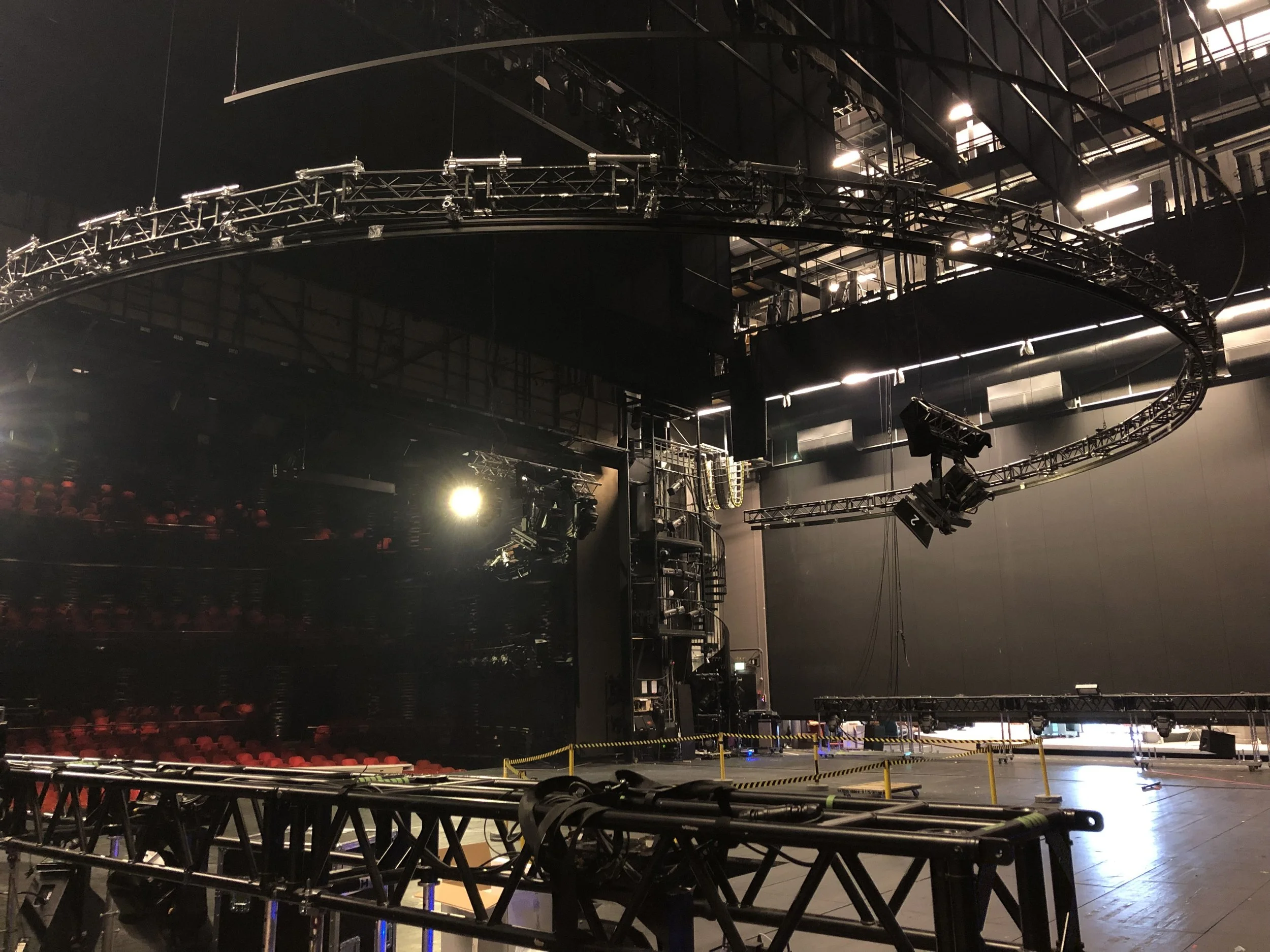 Scenografiens struktur gennemlyses af en valset skinne med 20m i diameter. På skinnen køre en positions styret moovinglight, der skaber et skygge mønster som bevæger sig over scenen.