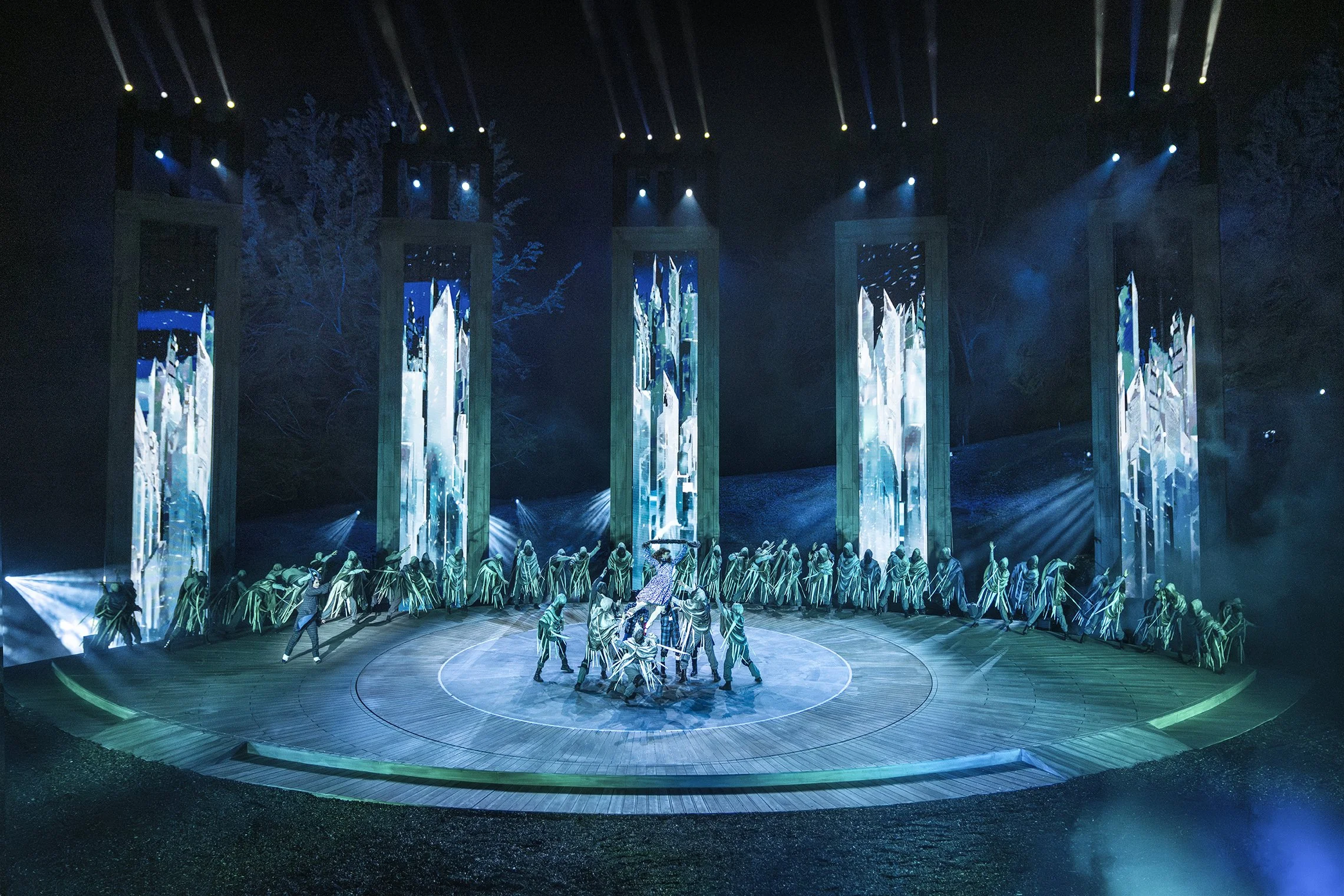 Forestillingen gør brug af et omfattende teknisk setup: flammer, røg-jets, pyroteknik, kunstig sne, et stort antal røgmaskiner, indbygningslys og LED-videoskærme, der sammen med en drejescene skaber dynamiske rumskift og levende tableauer. Kombinationen af effekter og lys bygger et visuelt univers, hvor kulde, varme, magi og fare hele tiden spiller op mod hinanden og understøtter historiens rejse gennem de forskellige verdener.